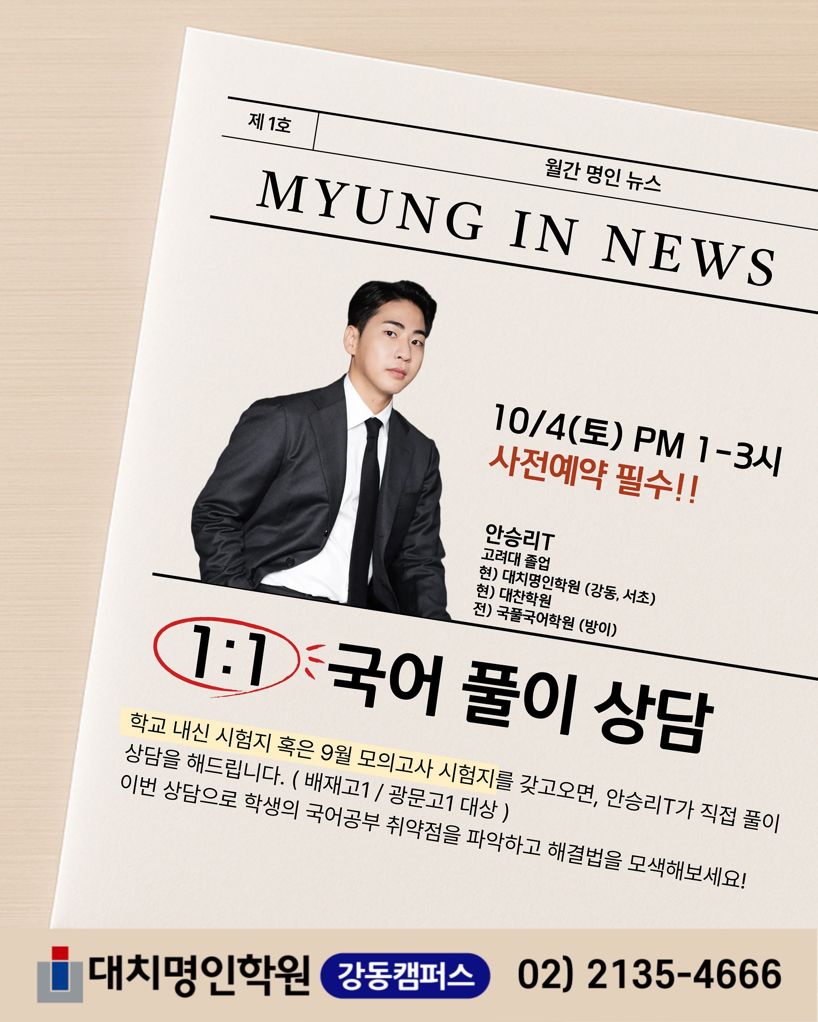 강좌 소개 CLASS 강동 [배재고1/광문고1] 안승리T 1:1 국어 풀이 상담 (10/4) 작성자 : 작성일 : 2025-09-24 20:07 조회 : 477 ▶[고1]수강신청◀ 목록보기